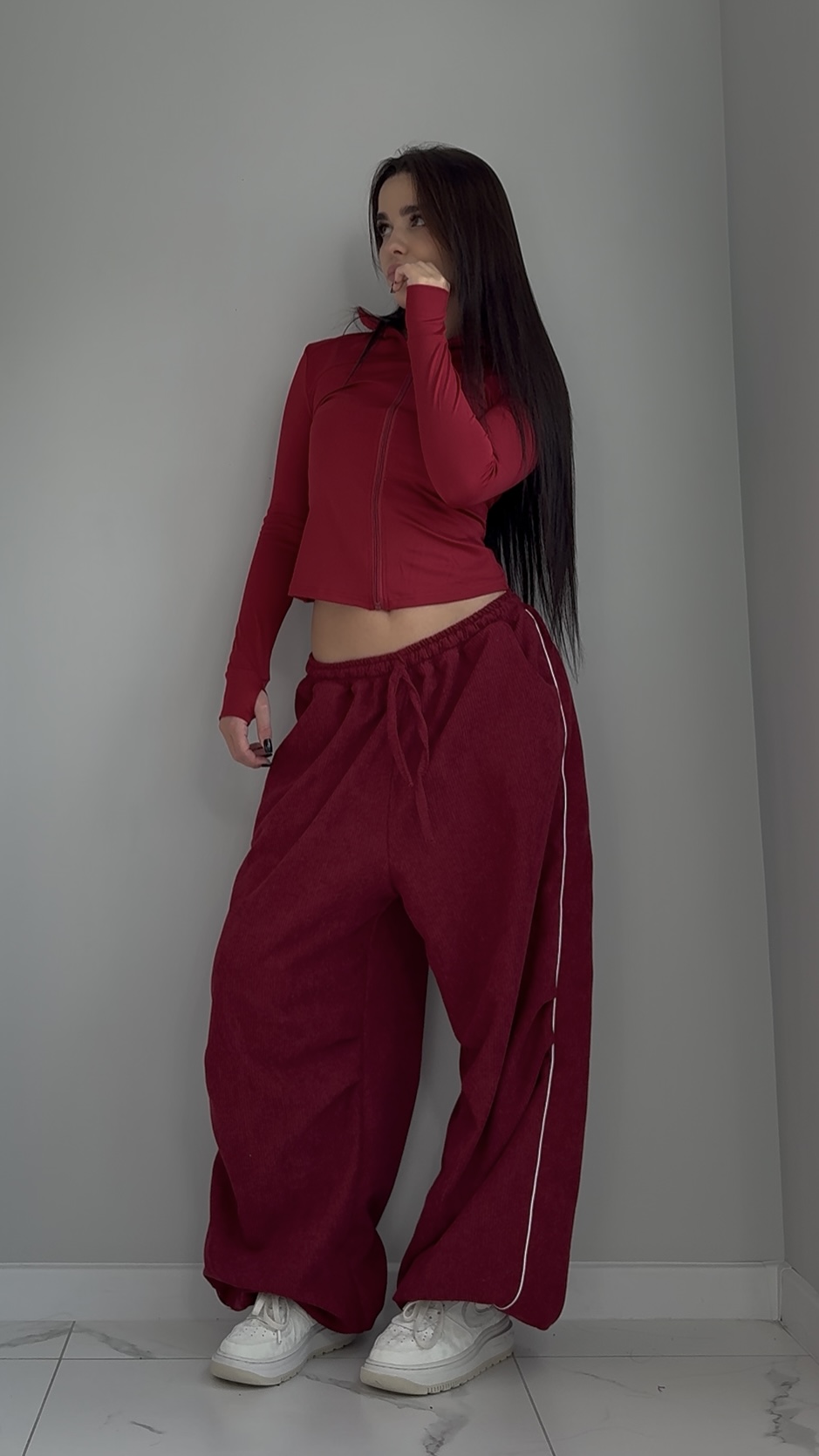 Посадка регулюється шнурком на талії, є лише передні кишені. Внизу – фіксатори для коригування ширини, збоку – кант.