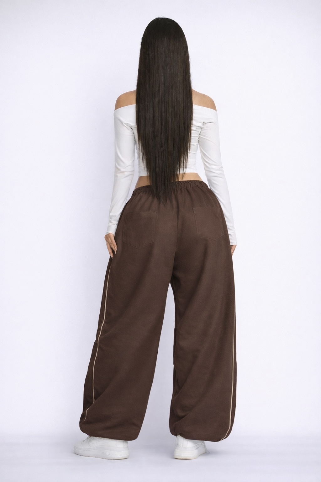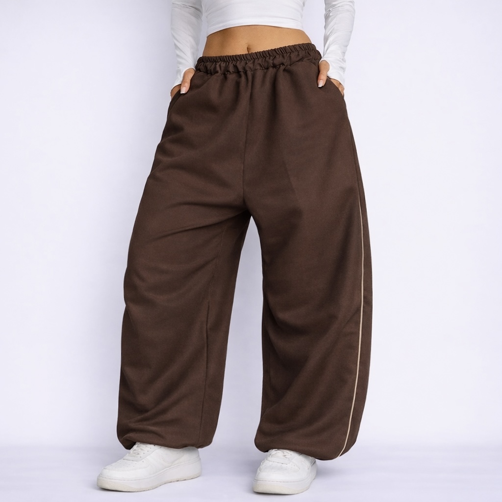 Мають занижену матню, з боків — білий кант, що додає стильного акценту.