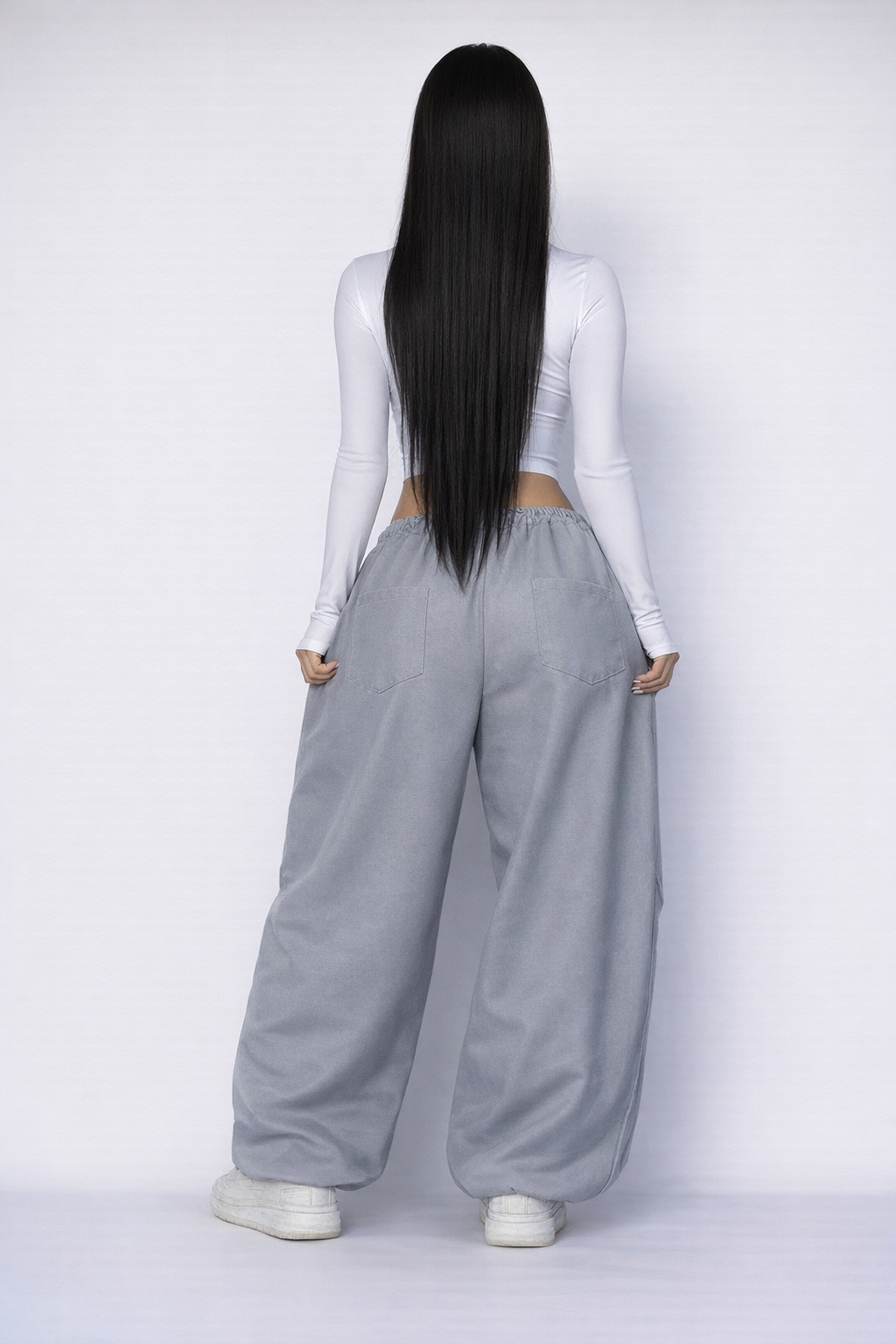 Мають занижену матню, з боків — білий кант, що додає стильного акценту.